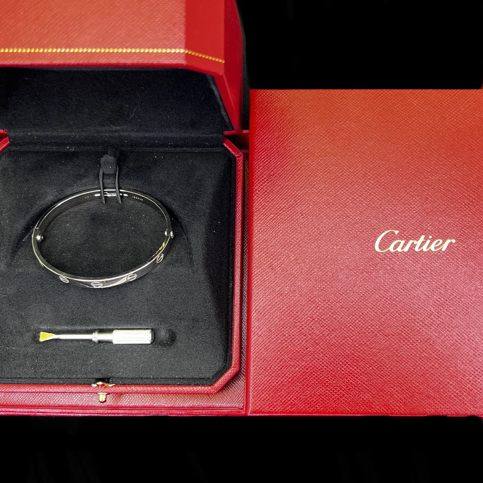 Includes screwdriver, inner and outer Cartier Box